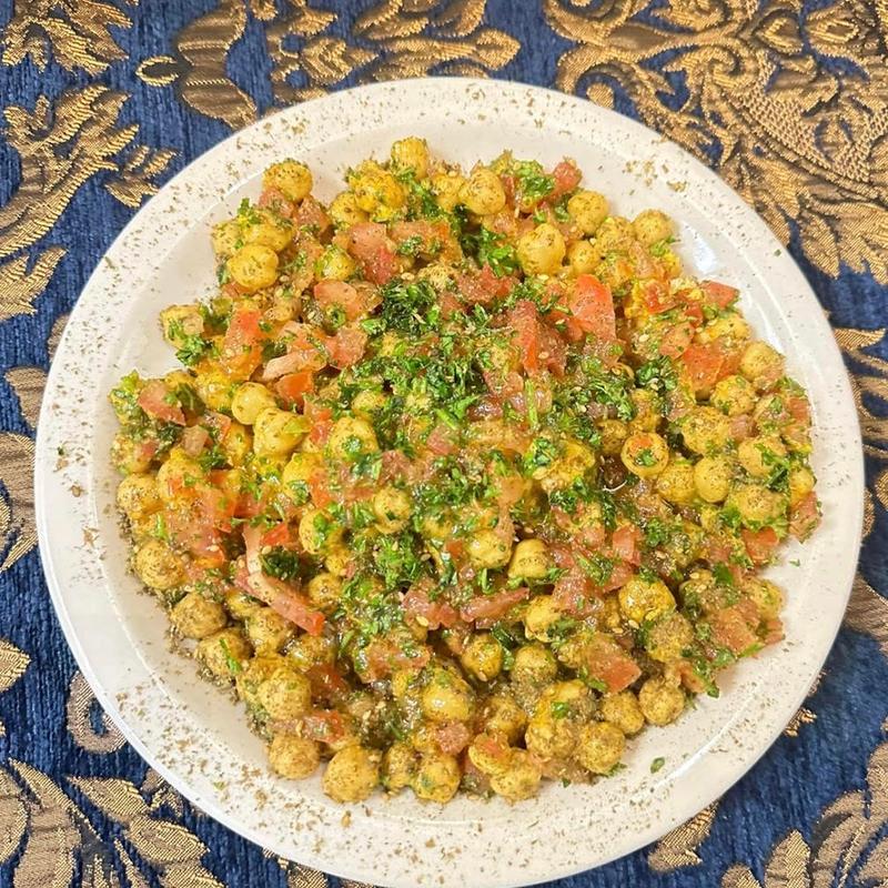 Chickpeas mixed with pickled mangos, fresh tomatoes, and parsley.